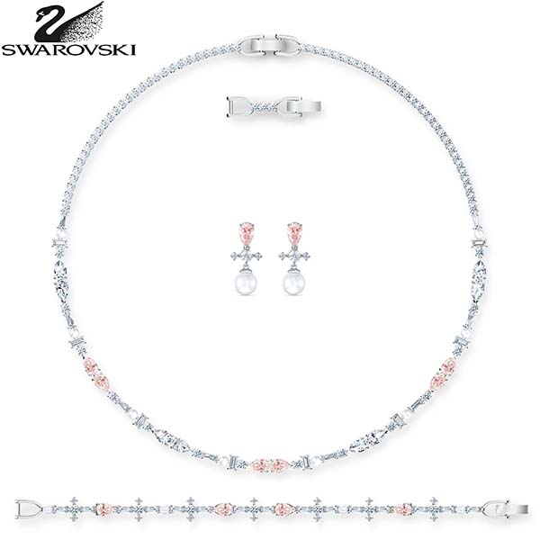Swarowski Perfection Set, Pink, Rhodium Plated