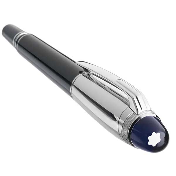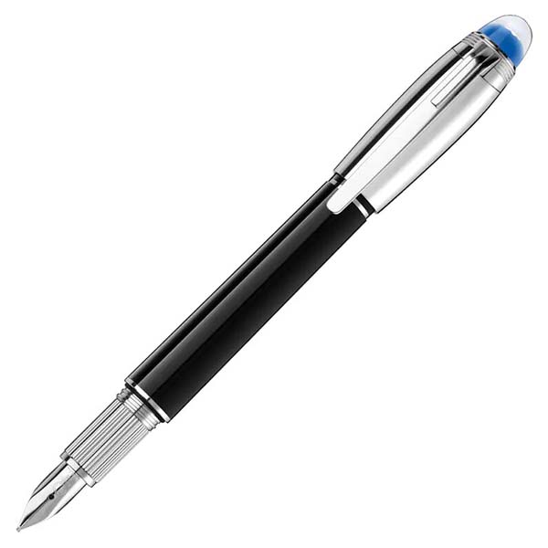The collection's new design celebrates the immense emotion, described by all space travellers, of seeing our blue planet floating in the vast expanse of space. The unique StarWalker emblem technology features a blue translucent dome beneath the Montblanc emblem, reminiscent of the Earth emerging above the lunar horizon. The StarWalker Doué comes with a platinum-coated cap and fittings and a black precious resin barrel. The fountain pen is hand-crafted with a rhodium-coated Au585 /14 K gold nib.