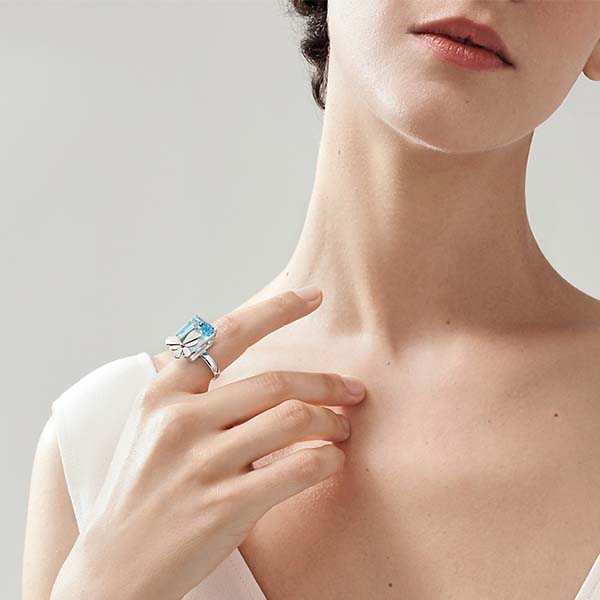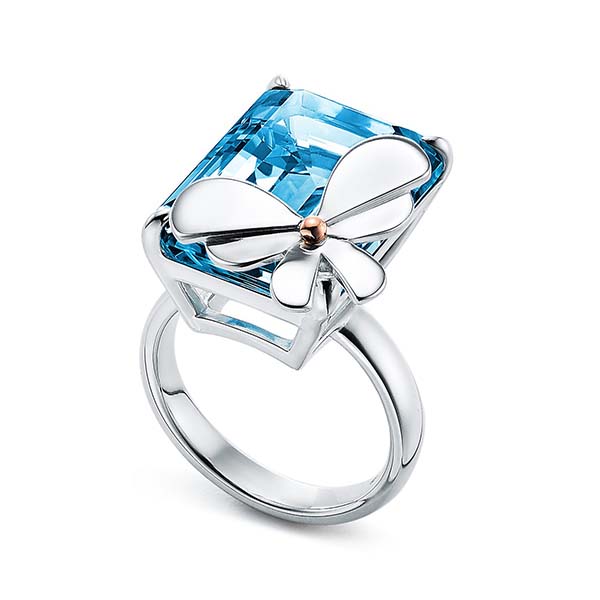 Drawing inspiration from an urban garden, the Return to Tiffany Love Bugs collection transforms an icon into something unexpected and modern. A radiant blue topaz adds a pop of color of this striking butterfly ring.