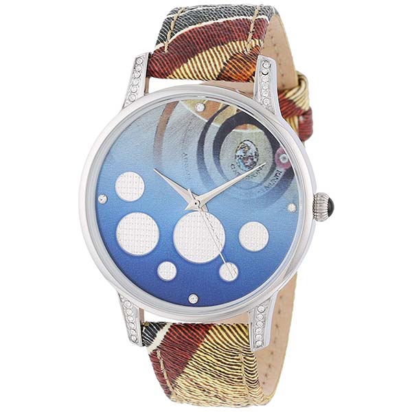 Gattinoni Women's B0568-002 Delta Stainless Steel Planetarium Textured Leather Strap Swarovski Crystal Watch.