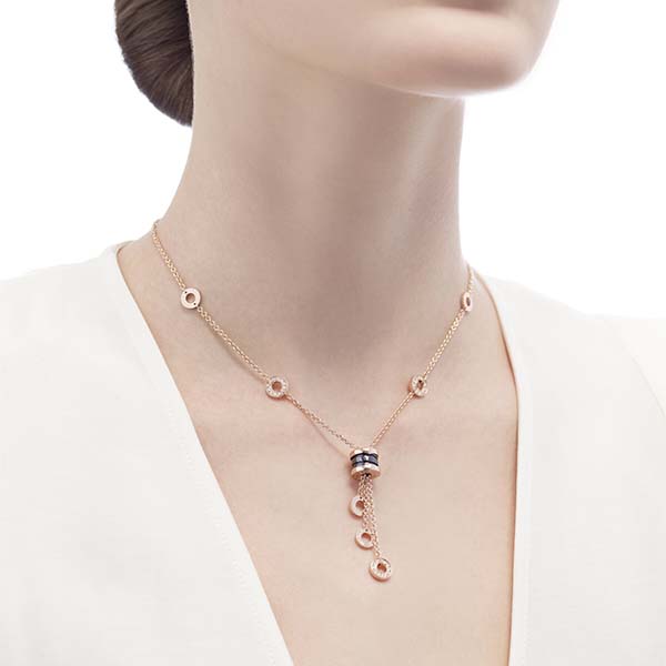 Drawing its inspiration from the most renowned amphitheater of the world, the Colosseum, the B.zero1 necklace is a true statement of Bulgari’s creative vision, challenging the very essence of jewellery design. The purity of its distinctive spiral, is a metaphor for the harmony of past, present and future - reflected in the magnificence of the eternal city - and the emblem of the pioneering spirit of the collection.