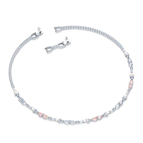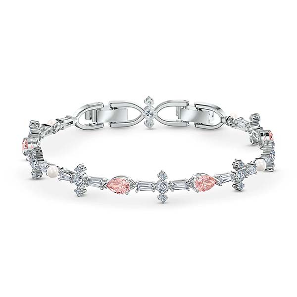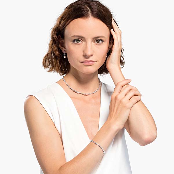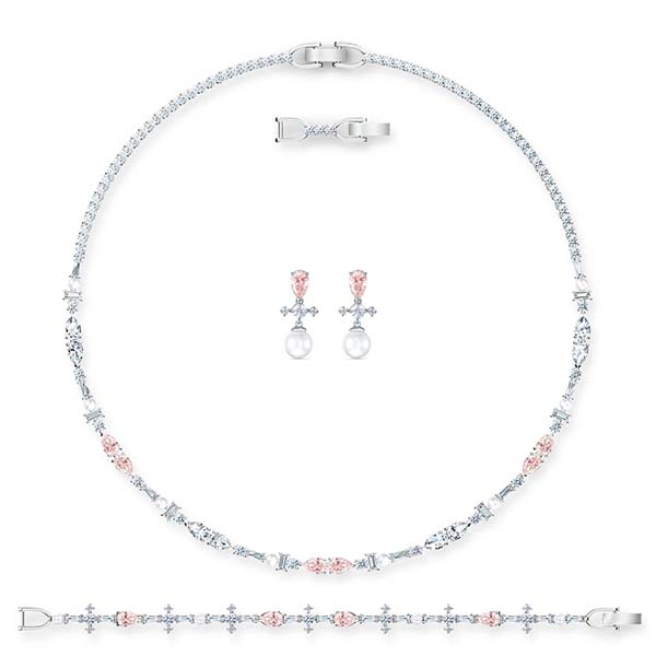 This comprehensive Swarovski set contains the highlights of our Perfection Collection. The necklace and bracelet feature bright white and soft pink crystals on a rhodium-plated base. White Crystal Pearls dangle from the pierced earrings, complementing the pink ear studs. You can wear each piece solo or all of them together in an elegant ensemble. A great gift for very special occasions.